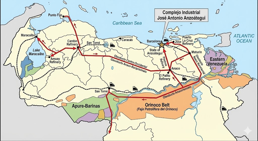 The vast majority of Orinoco upgrading, blending, and export happens at a single coastal location: The Jose Terminal (Complejo Industrial José Antonio Anzoátegui), located near Barcelona on the northern coast.
