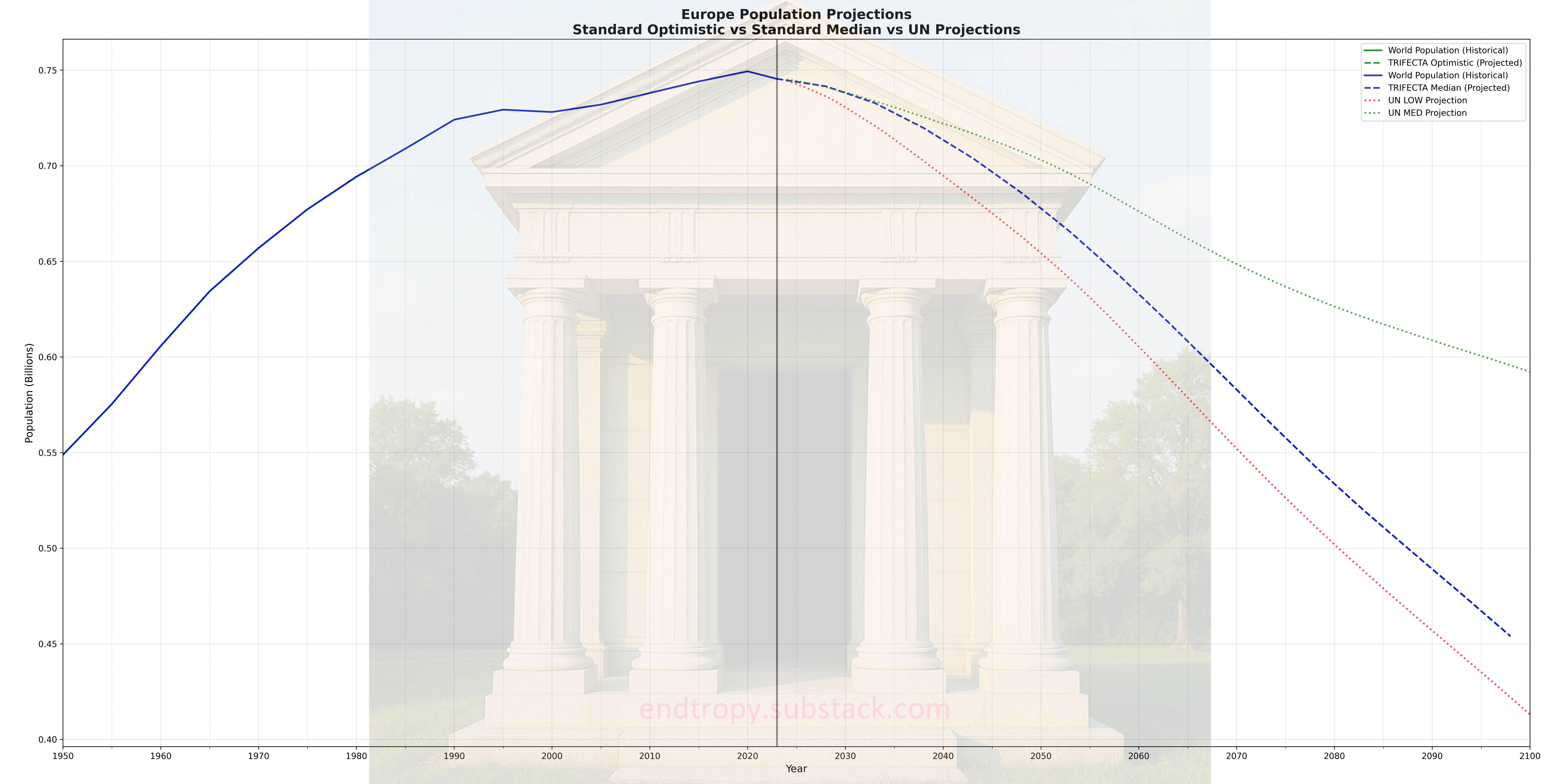 The basic engine is a common cohort projection engine described via numerous academic papers. You can see all previous graphs are subtitled 1.4 TFR FLOOR; one of the special features aimed at testing different variables relevant to demographic forecasting.